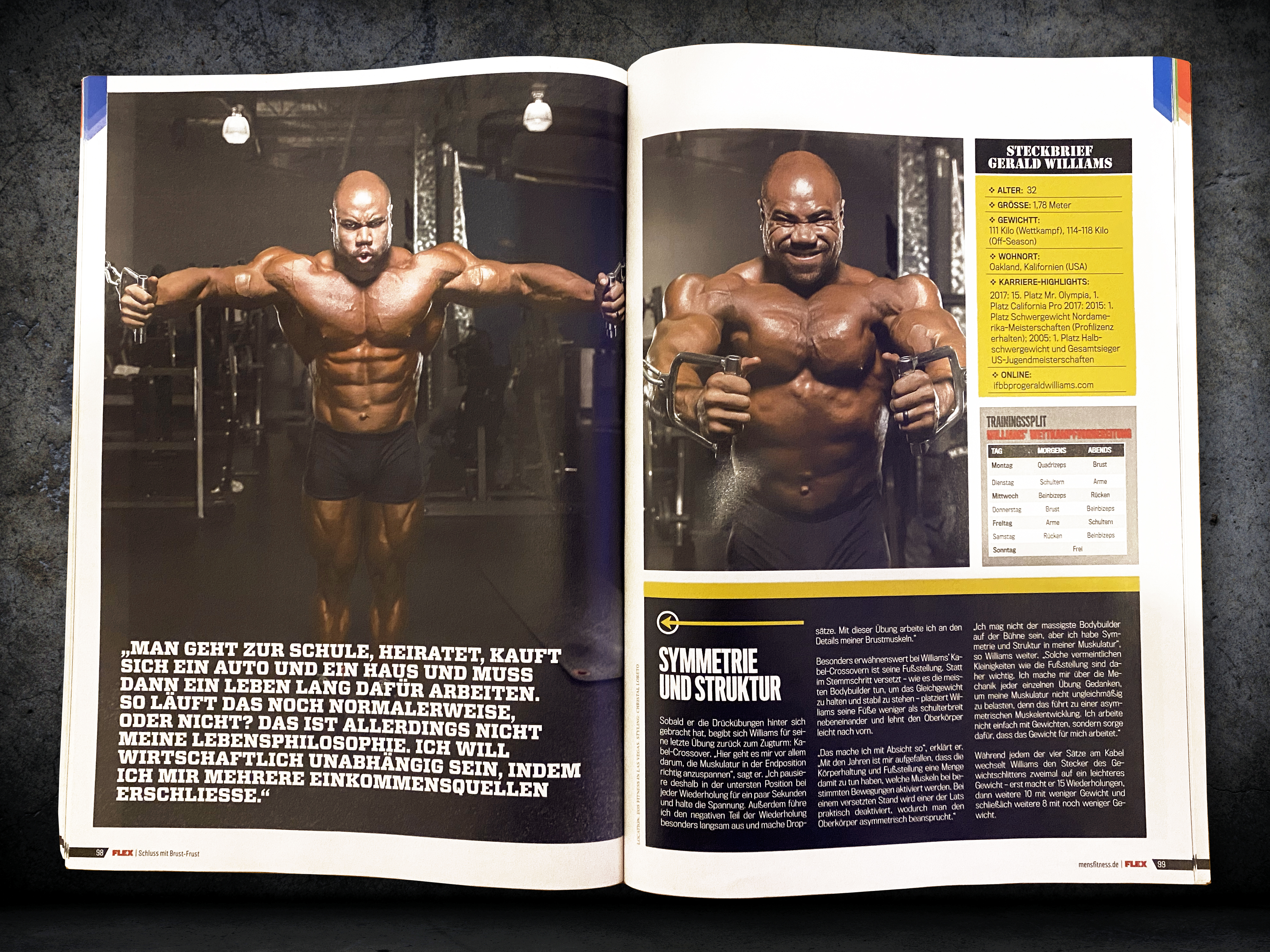 Flex to amerykański magazyn poświęcony kulturystyce, wydawany co miesiąc. Byłam Dyrektorem Kreatywnym oraz Projektantem niemieckiej wersji tego magazynu. Do moich obowiązków należało zaprojektowanie całkowicie nowego layoutu oraz opracowanie całego magazynu na comiesięcznej podstawie, w tym również przygotowanie publikacji do druku. Czuwałam nad spójnością wizualną i estetyką, zapewniając, że każdy numer odpowiadał na potrzeby czytelników i utrzymywał wysoki standard jakości graficznej.